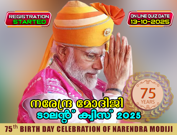 നരേന്ദ്ര മോദിജി ടാലന്റ് ക്വിസ് 2025 തീയതി 2025 ഒക്ടോബർ 13 ന് രാവിലെ 10 മണി മുതൽ 10.15 വരെ