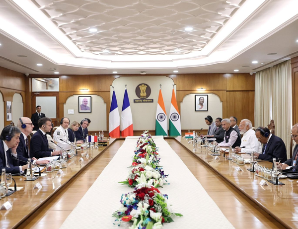മഹാരാഷ്ട്രയിലെ ലോക് ഭവനിൽ ഫ്രഞ്ച് പ്രസിഡന്റ് ഇമ്മാനുവൽ മാക്രോണുമായി നടത്തിയ ഉഭയകക്ഷി ചർച്ചകൾക്ക് ശേഷം, ആഗോള അനിശ്ചിതത്വത്തിനിടയിൽ ഇന്ത്യ-ഫ്രാൻസ് ബന്ധത്തെ "പ്രത്യേക"വും ആഗോള സ്ഥിരതയ്ക്കുള്ള ശക്തിയുമാണെന്ന് പ്രധാനമന്ത്രി നരേന്ദ്ര മോദി വിശേഷിപ്പിച്ചു.